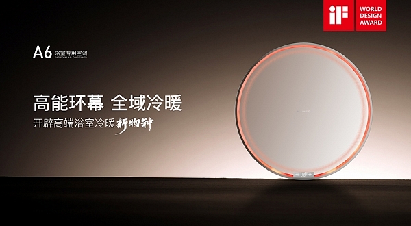 美爾凱特A6浴室專用空調,憑借其創新的高能環幕設計語言與冷暖雙擎創新科技,榮獲工業設計界的“奧斯卡”——2025德國iF設計獎。